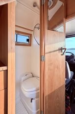 Der hochwertige Innenausbau aus hellem Buchenholz bietet eine lichtdurchflutete Atmosphäre, flexible Schlafmöglichkeiten, Kombi-Toilette mit Innen- und Außendusche, großzügige Küche mit SMEV Arbeitsplatten, Coolmatic-Kühlschrank (110 l), 2 Wassertanks (je 115 l) und viele liebevolle Details für entspanntes Reisen.